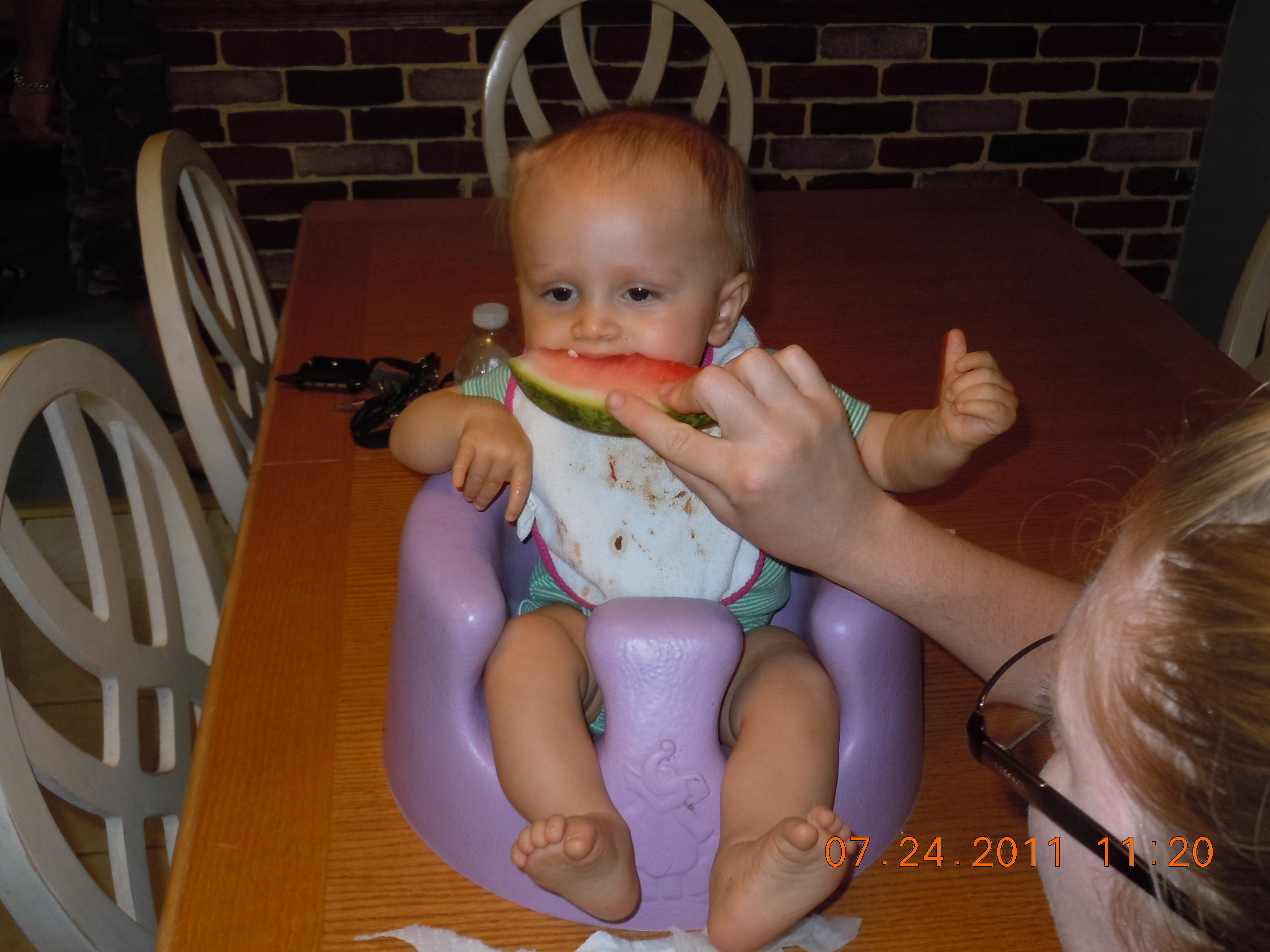 A year ago Kai could ‘stand’ with the help of his dad. Kai would bite a pice of watermelon. Kai could drink from a sippy cup.