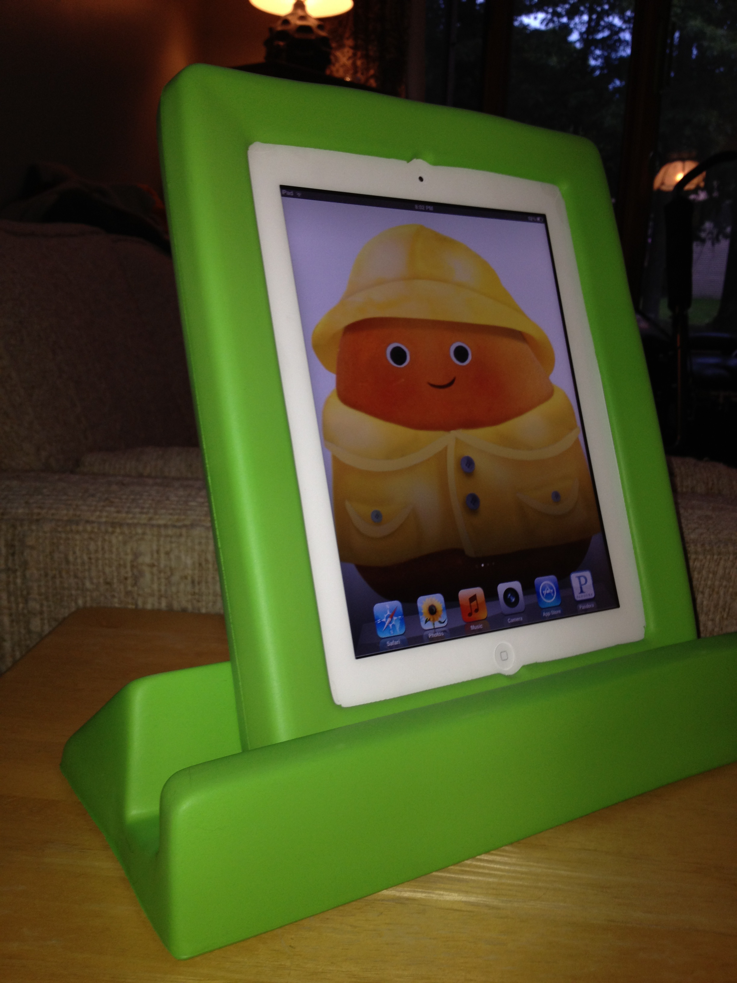 Of course one of my concerns with the Ipad is that he would not be able to hold it, and if he could not hold it up he would not really be able to see it unless I hold it for him, so I found an amazing Ipad case made for kids that is fun durable and best of all has a very steady stand that allows Kai to look right at his Ipad while sitting in his chair!